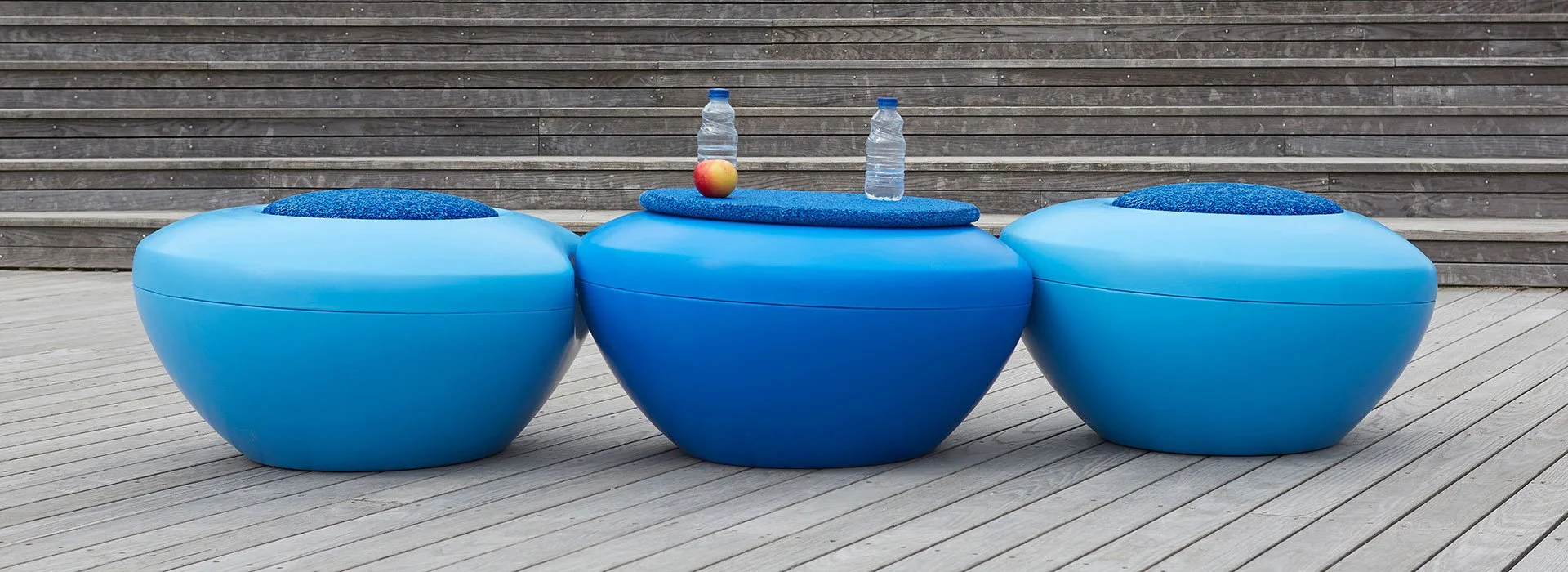 Scoopi Table Top is a small round table that is part of the Scoop Family series. It is used instead of a Scoopi Button and placed on top of a Scoopi Seat. It is used to eat your food on, drink a soft drink or play a game with some friends during the lunch break. It can withstand being sat on. The series can be arranged in many different formations according to needs. There is inspiration in the Scoop Family catalogue for different layouts of the entire series.